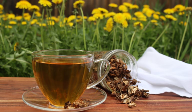 Simple recipe: 1–2 tsp dried dandelion root/leaves, 1 cup hot water, steep 5–10 minutes.